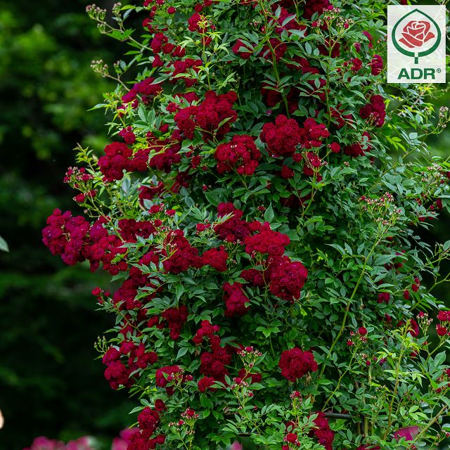 Folyamatosan virágzik nagy bíborvörös virág-fürtekben. Áthatolhatatlan falúvá vagy kompakt virágoszloppá nő. A baden-badeni újdonságverseny a világ egyik legrangosabb rózsapróbája. A Perennial Domino® több zsűri három évnyi bonitása után megkapta a Német Rózsa Társaság Tiszteletbeli Díját, a Hegymászó Rózsa kategóriában az Aranyérmet, és a történelem első mászórózsaként a verseny legmagasabb díját: az Arany Rózsát. Baden-Baden 2020.