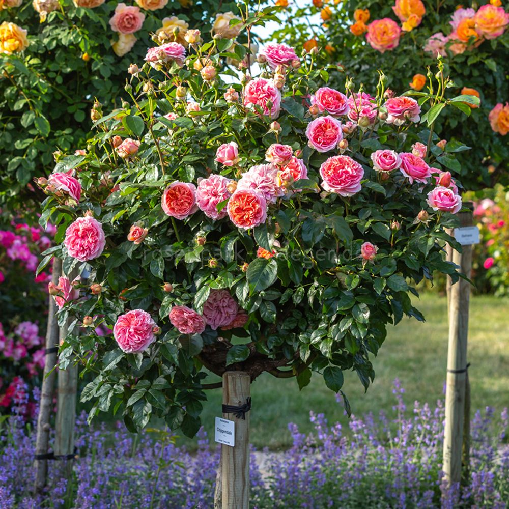 Cserepes előnevelt (hajtásos-leveles) Rózsafa 90 centiméteres szárhosszúsággal.